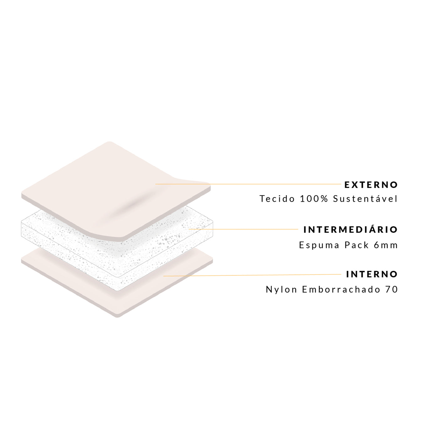 A combinação dos três materiais: nylon, espuma pack e nylon emborrachado, oferece resistência e proteção para os alimentos e bebidas que irão na bolsa. Além disso mantem a temperatura interna sempre fresca e evita que as frutas ou outros alimentos delicados fiquem batidos ou amassados.